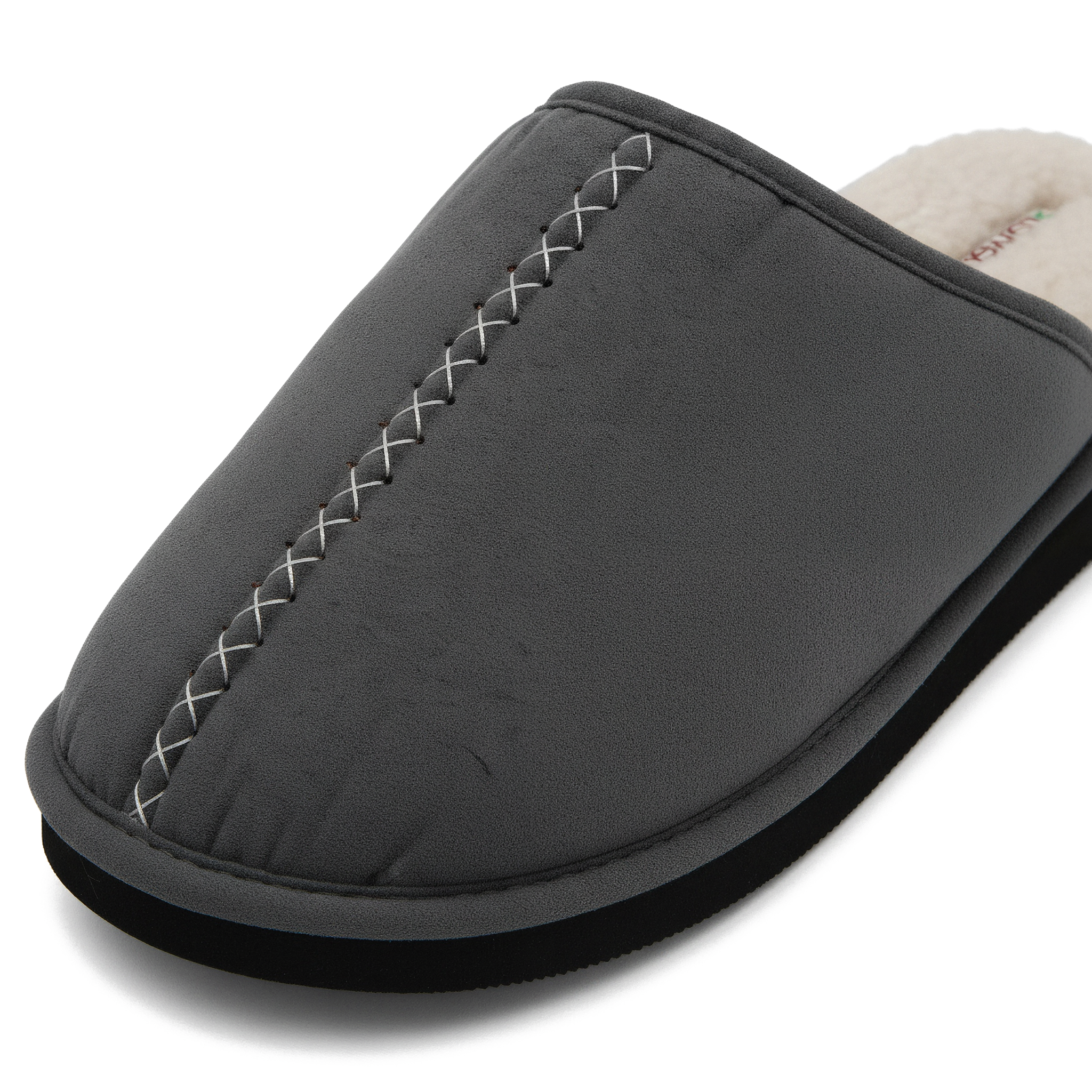 Die strapazierfähige schwarze EVA-Außensohle bietet eine leichte Dämpfung, die jeden Schritt abfedert, und sorgt für Flexibilität und sicheren Halt. Gefertigt mit einem sicheren, ungiftigen Kleber, stehen diese Hausschuhe nicht nur für Komfort, sondern auch für Qualität und Umweltbewusstsein.